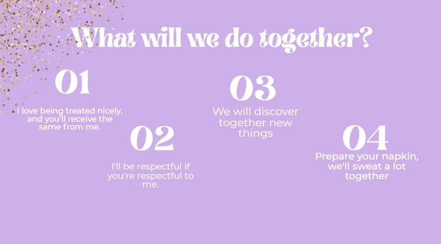 Ахэгао, Шлепки, Эротические танцы, Стриптиз, Кончить на лицо, Тверкинг, Косплей, Раком, Камшот, Мастурбация пальцами, Кожа, Фистинг, Унижение, Каблуки, Фут-фетиш, Глубокая глотка, Ролевые игры, Минет, Массаж, Между грудей, Мастурбация, Оргазм, Шоу с маслом, Сквирт